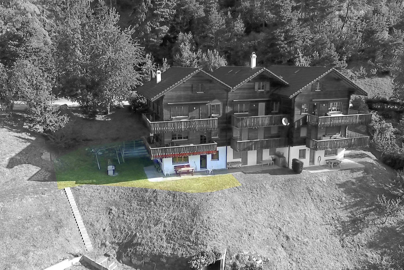 grosser Sitzplatz mit Gartenkamin
